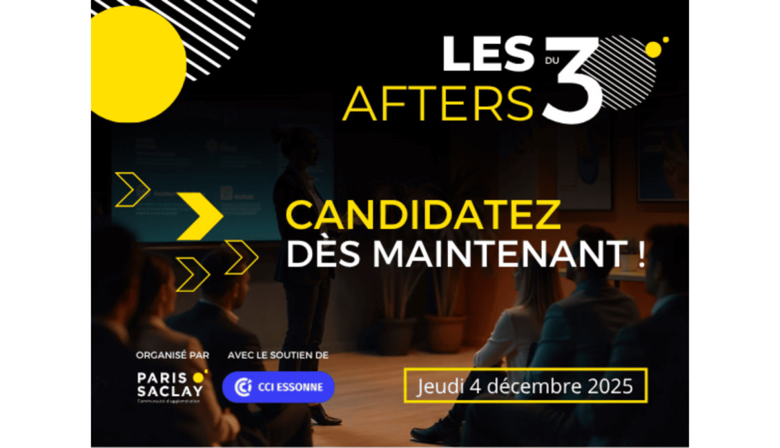 Candidatez pour la 8ème édition des Afters du 30, un événement organisé par la Communauté Paris-Saclay en partenariat avec la CCI Essonne.
