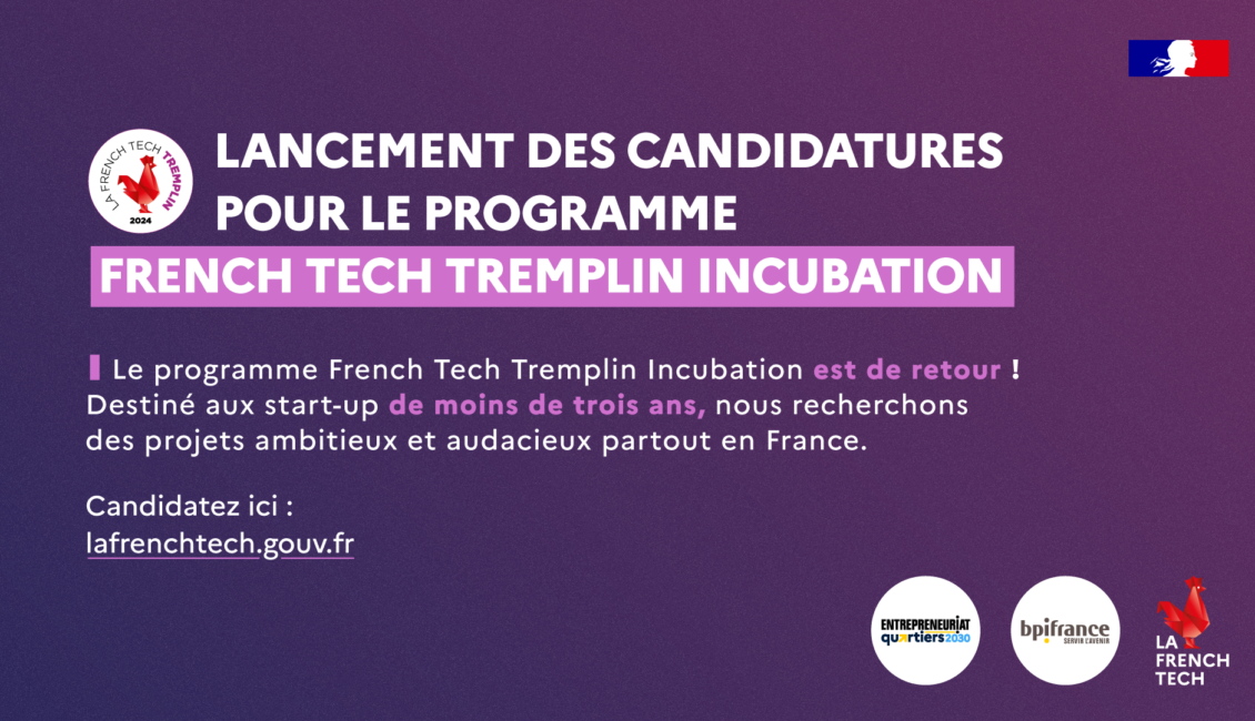 Chers start-up, l’appel à candidatures pour la phase Incubation du programme French Tech Tremplin 2024 est désormais ouvert !