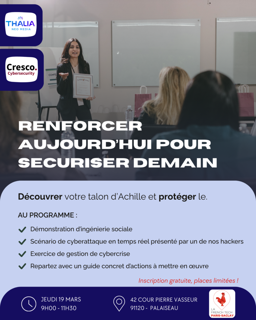 Cresco Cybersécurité déploie son séminaire , le 19 mars: démo d’Ingéniérie sociale + atelier de gestion de crise. Gagnez un audit cyber !