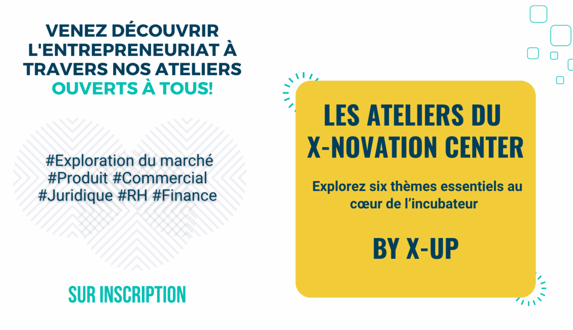 Venez participer aux ateliers ouverts à tous de l’incubateur X-UP de l’ École polytechnique ! Vous êtes entrepreneurs, étudiants, chercheurs, doctorants ayant un projet dans la greentech, healthtech, les industries du futur ou bien edtech, c’est l’opportunité de :