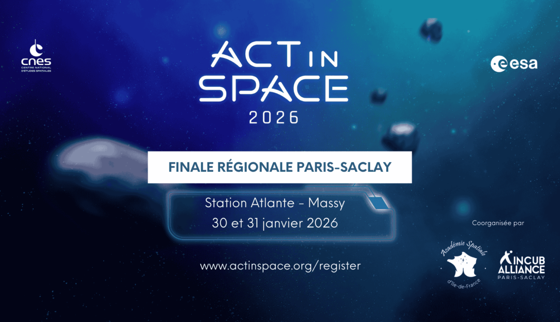 Vous êtes passioné·es de spatial et vous souhaitez vous lancer un nouveau défi ? IncubAlliance Paris-Saclay et l’Académie Spatiale d’Île-de-France vous invitent à participer au Hackathon Act in Space les 30 et 31 janvier 2026, à Station Atlante (Massy). 24 heures pour imaginer, innover et prototyper des solutions basées sur des technologies spatiales !