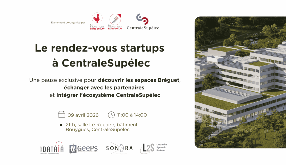 Le 09 avril 2026, pendant la pause déjeuner, CentraleSupélec et La French Tech Paris-Saclay vous invitent à une rencontre exclusive au cœur de l’innovation de CentraleSupélec.