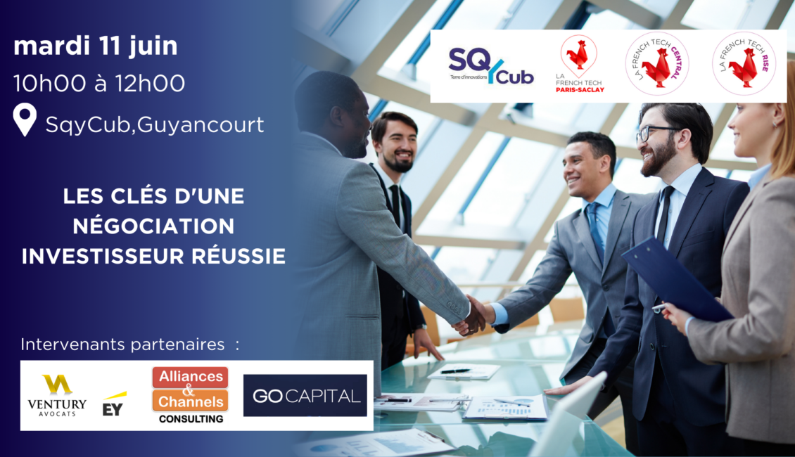 Participez à notre masterclass au côtés de nos experts partenaires EY Ventury Avocat, cabinet spécialisé en droit des affaires et de l’innovation, Alliances&Channels Consulting, Ecosystem Success Builder et Go Capital, acteur territorial en capital-investissement, qui mettront à votre disposition toutes leurs expertises pour vous permettre d’appréhender toutes les étapes et les obstacles de la négociation avec des investisseurs.