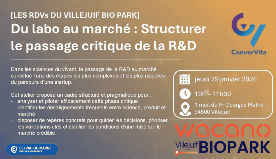 Le Villejuif Bio Park, en partenariat avec ConverVita, a le plaisir de vous inviter à un atelier pragmatique dédié à cette phase clé :