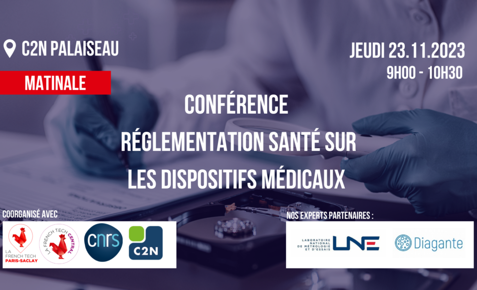 La French Tech Paris-Saclay et le CNRS vous invitent cordialement à assister à une Matinale qui se tiendra au C2N à Palaiseau, dédiée à la réglementation concernant les dispositifs médicaux.